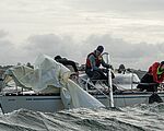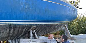 46 fods motorbåd skulle sejles på land men sank – to personer og en hund reddet
