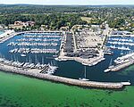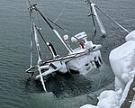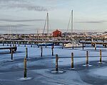 Sejler Henrik Jørgensen sendte sin drone op i februar 2021 i et frostklart vejr. Dronen måtte nødlande da der var minus 6 grader, så batteriet blev hurtigt drænet for strøm. De overisede både er fra Bøgeskov Havn på Stevns. Mette Juhl har taget billedet.