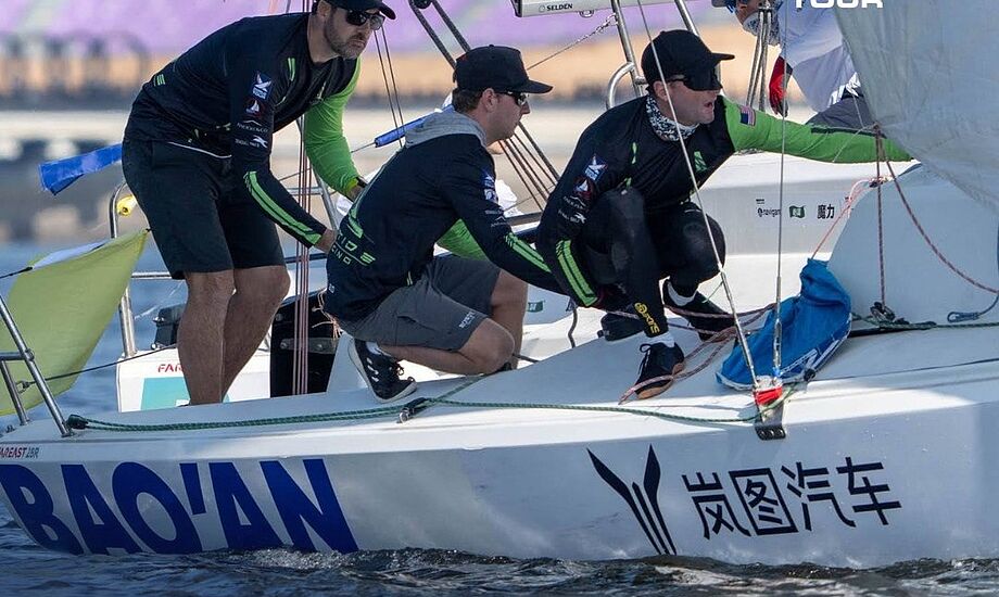 VM i match race sejles midt i storbyen, ud for Shenzhen Bao'an. De urbane omgivelser med høje bygninger helt ned til vandet giver ekstremt udfordrende forhold – og har allerede sat et markant præg på mesterskabet, forklarer Joachim Aschenbrenner til minbaad.dk.