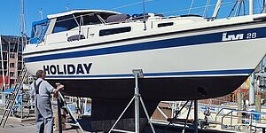 Nu er isen væk fra en Scampi 30, men den er stadig i vandet den stakkels båd i Kastrup. Det var den i hvert fald for 14 dage siden, siger Bjorn Corlin, der nu er med i konkurrencen Årets Bådvrag 2010.
