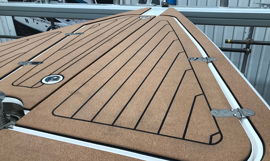 - Med en CNC-fræser kan du lave specielle design og logoer. Samtidig er 2. genration Flexiteek lettere og koldere at gå på en varm sommerdag.