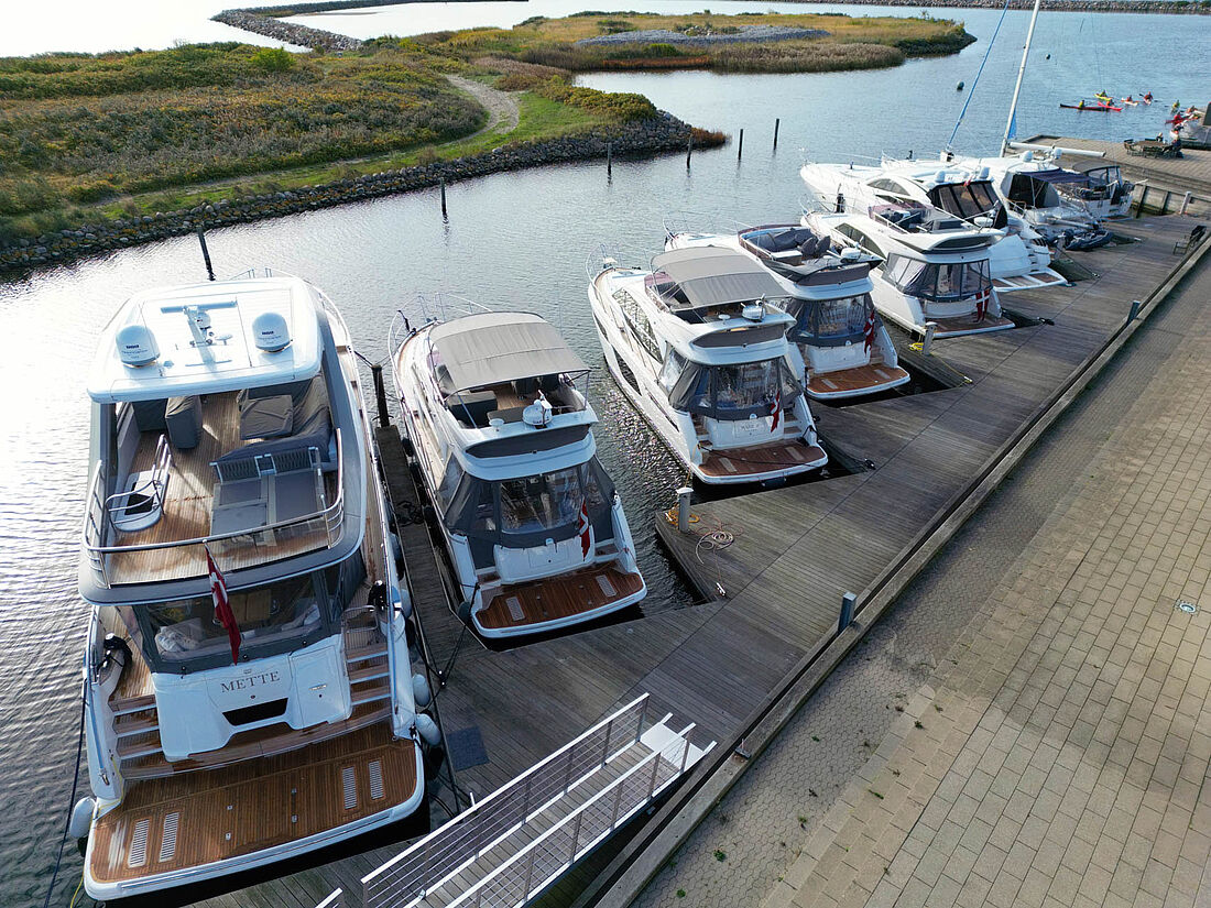 I Princess Yachts Denmarks lystbådehavn i Greve uden for København, er havnen lige nu fyldt med både fra hele modelprogrammet, klar til efterårets fremvisninger.