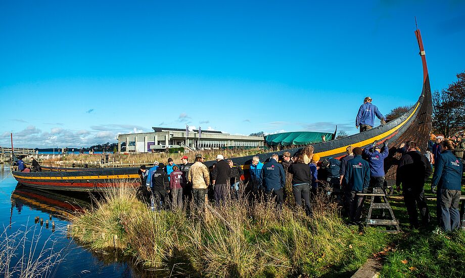 Besøger du museet igen i løbet af sommeren kan du følge med i arkæologernes, skibseksperternes og bådebyggernes arbejde med at genskabe det lille krigsskib fra Vikingeskibshallen.