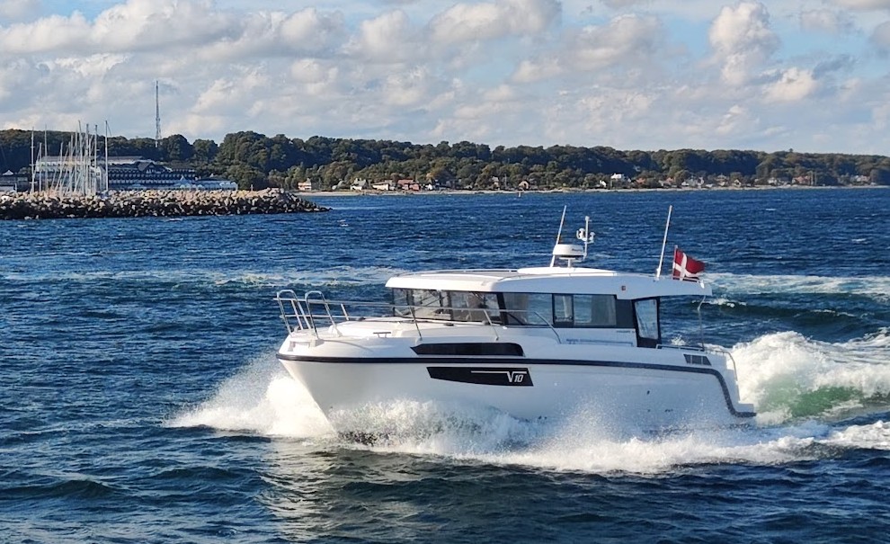Motorbaadsnyt.dk har nu været på vandet og teste Viknes 10 fra Bergen. En lukket båd, men hvor ruftaget kan åbnes på kort tid. Der er stor plads på agterdækket af båden, hvor man sidder dejligt med høje ryglæn og på to minutter kan der rulles en kaleche ned, så der bliver lukket, hvis det bliver koldt, som det var da vi testede i oktober.