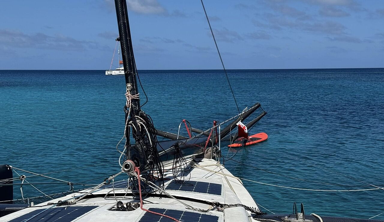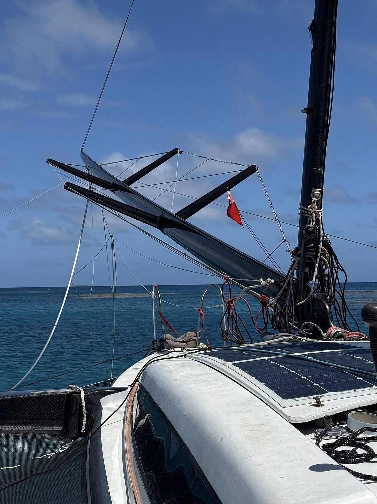 Uheldet skete, da et vant sprang, og den lette kulfibermast væltede i ét stykke. På parrets Facebookside beskrev Jan situationen umiddelbart efter hændelsen: