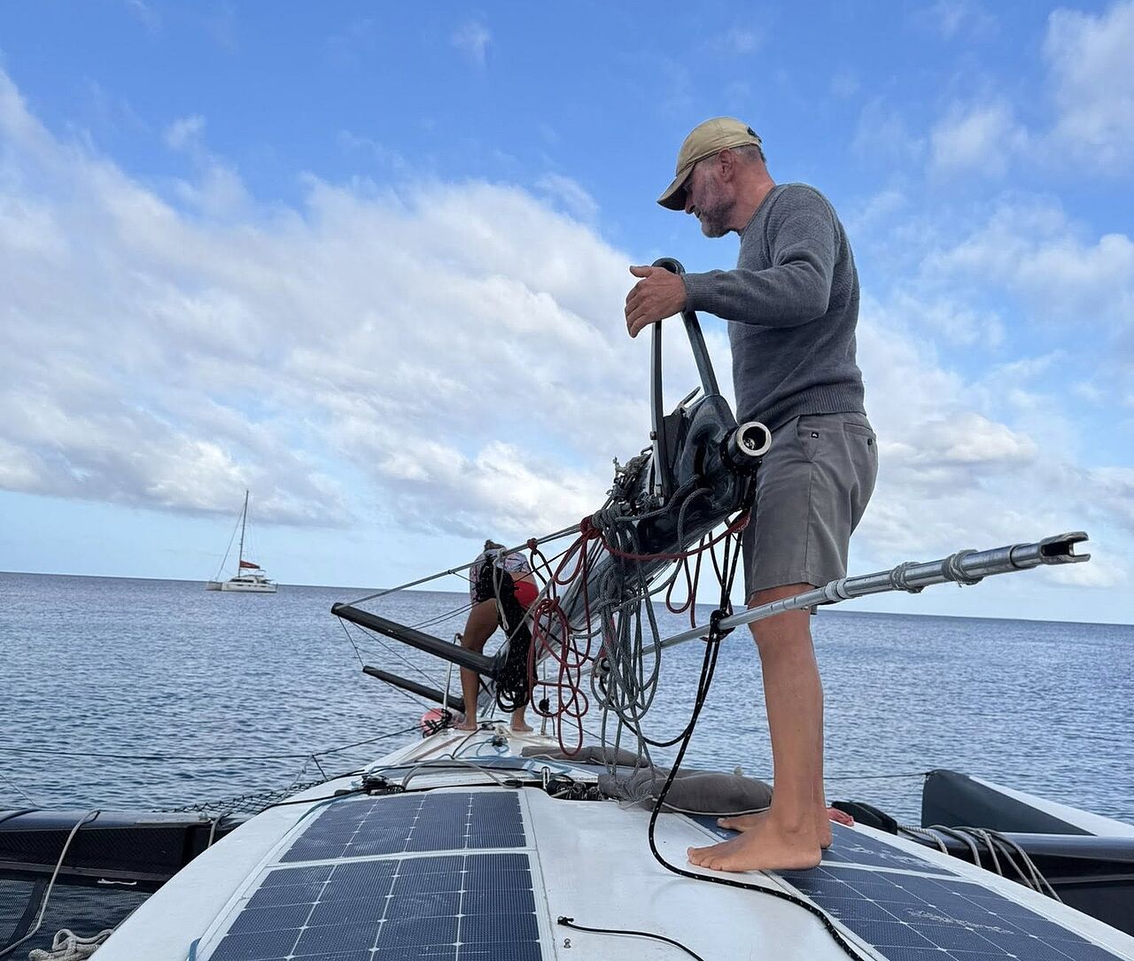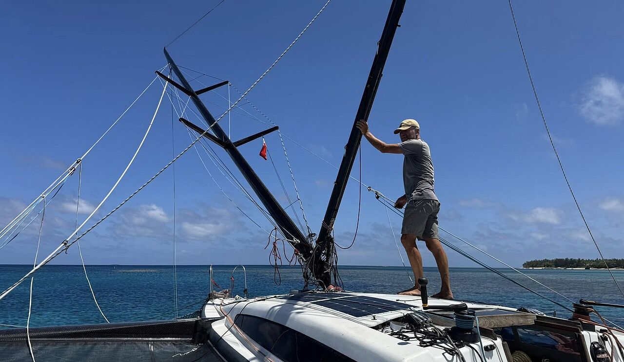 Trimaran-sejleren fra Sydfyn, Jan Andersen og hustruen Annette, mistede kulfibermasten 1.200 sømil fra New Zealand – men fik den selv rejst igen med reb, SUP og en teakpind på Black Marlin 33.