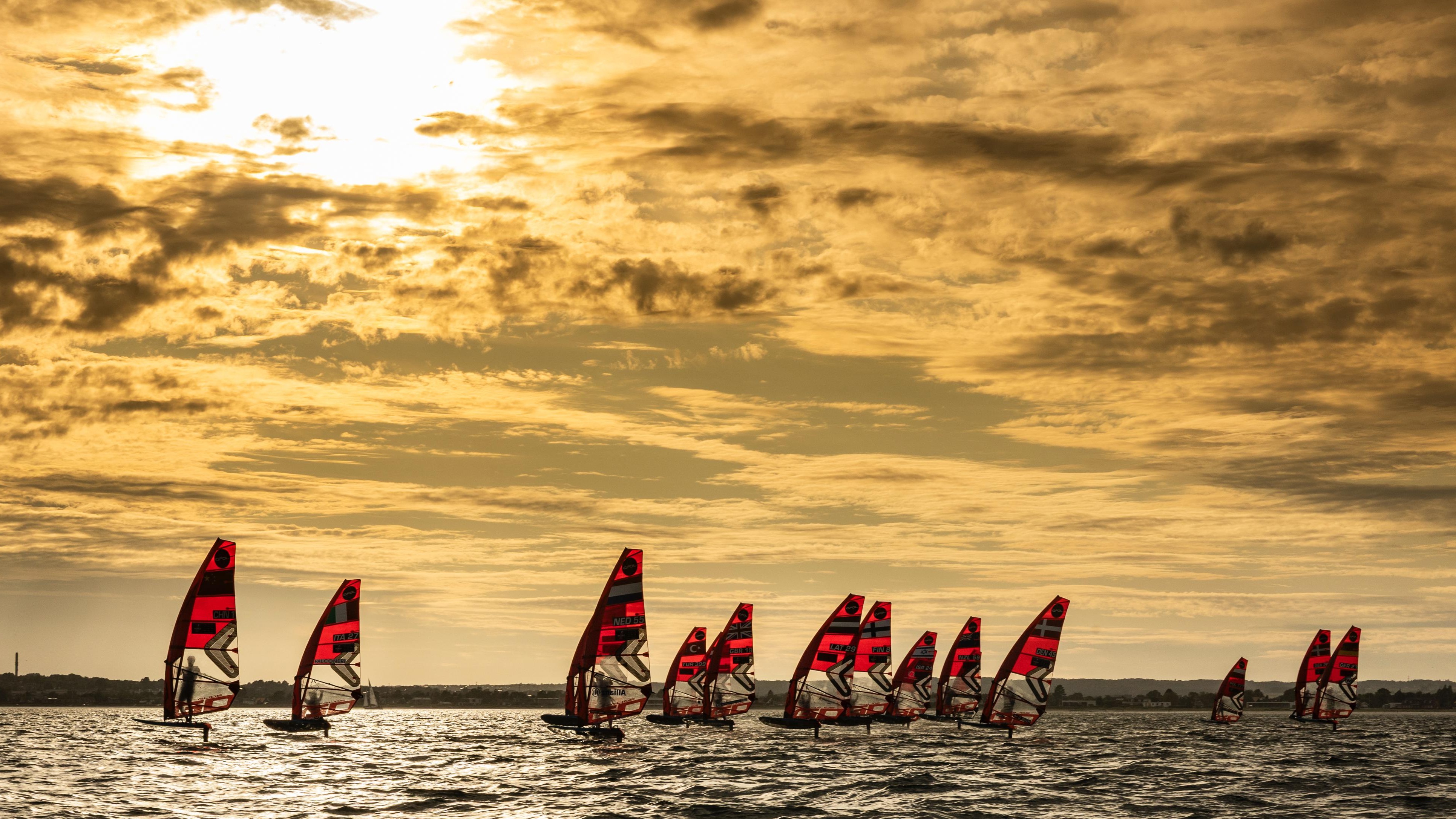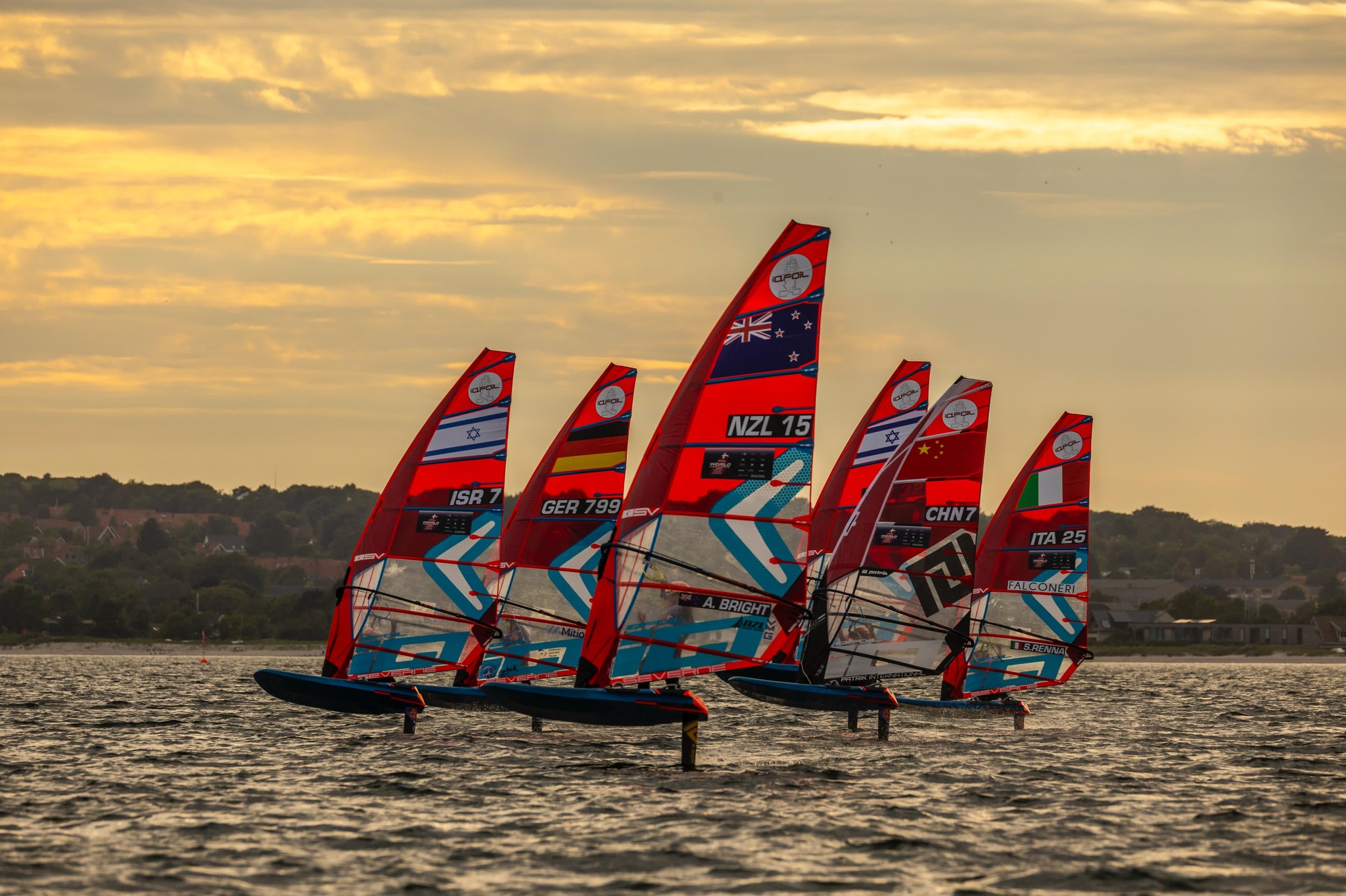 Solen stod lavt over Aarhus Bugt, da onsdagens første starter endelig lød ved iQFOiL VM’s fjerde dag. Klokken var passeret 18.00, før forholdene tillod sejlads – men så gik det til gengæld stærkt. Se flot video.