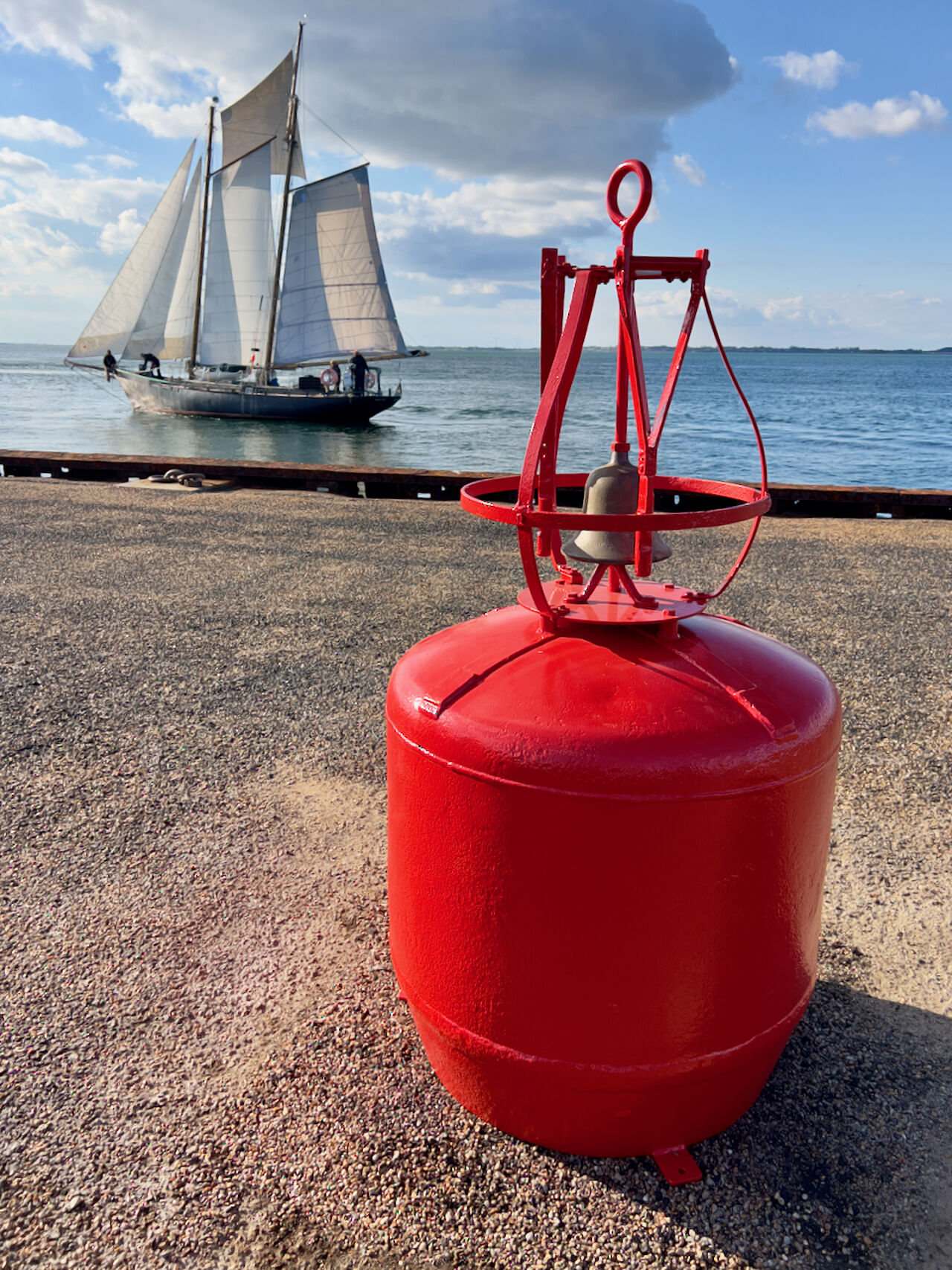 Den nye seværdighed på havnen er en farvandsafmærkning, en original, såkaldt klokkebøje, der blev nedtaget i Rudkøbing Løb omkring 1960.