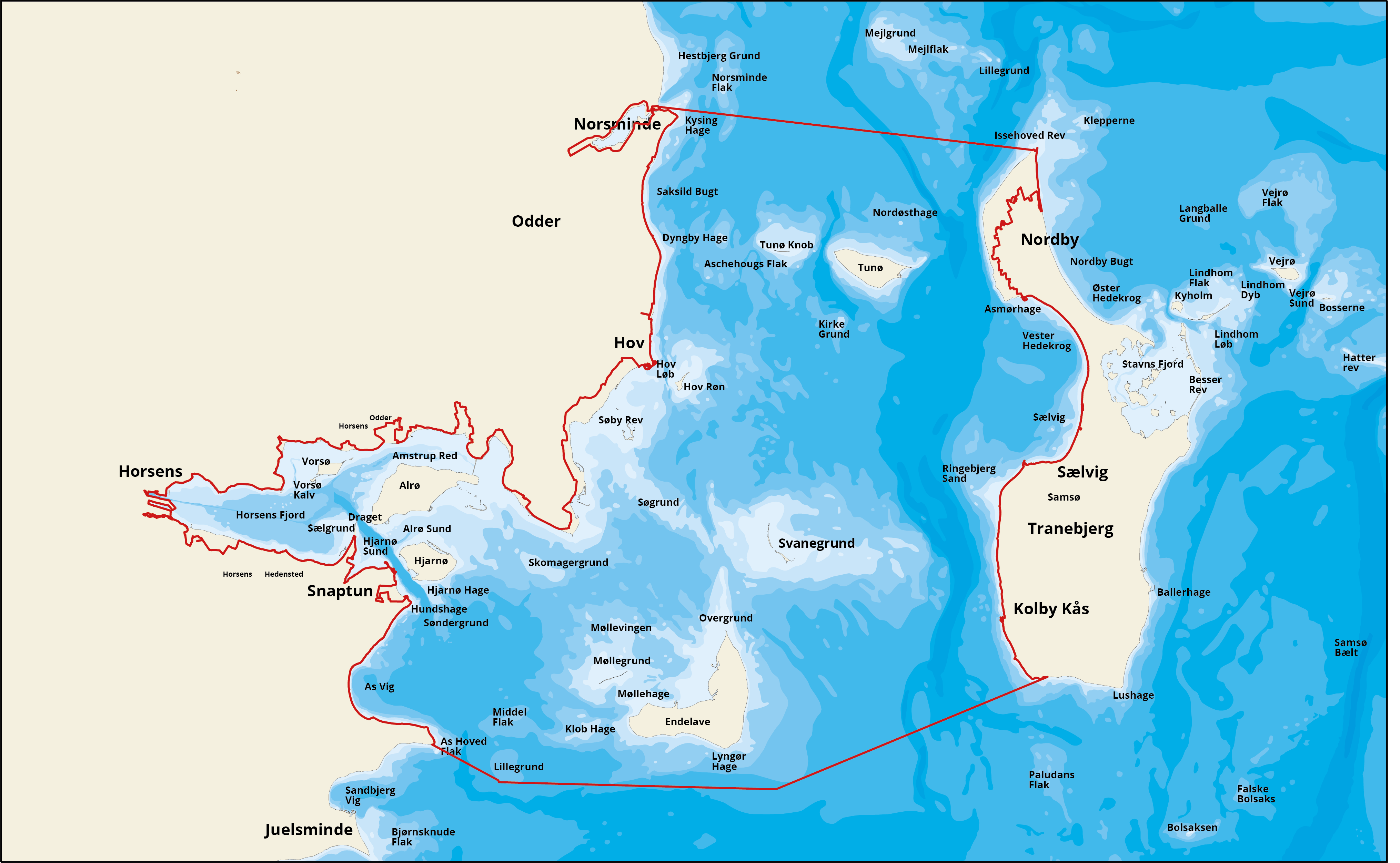 Område: Dækker kystfarvandet mellem Odder, Samsø og Hedensted Kommuner samt Horsens Fjord med øerne Hjarnø, Alrø, Endelave og Tunø