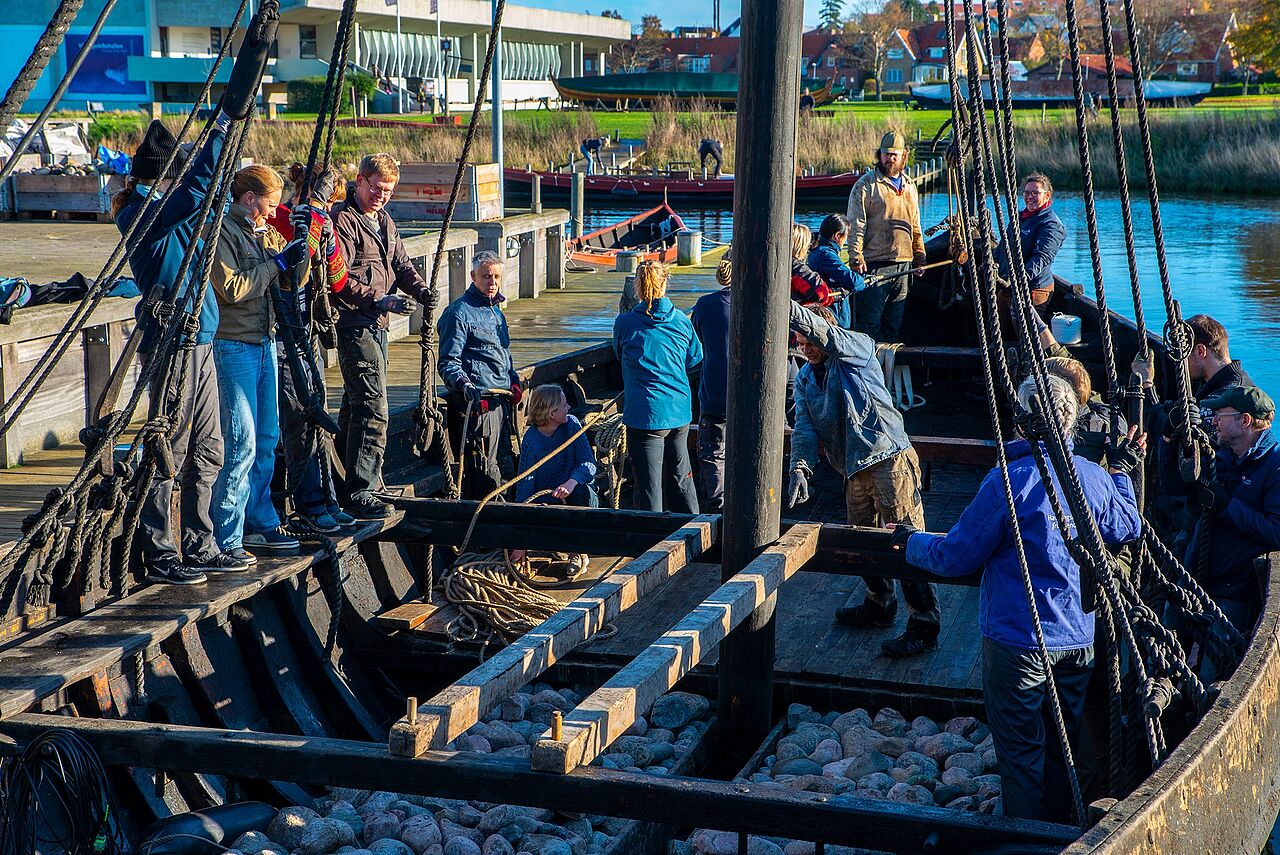 Læs mere om museets bådelaug og mulighederne for at blive frivillig på www.vikingeskibsmuseet.dk