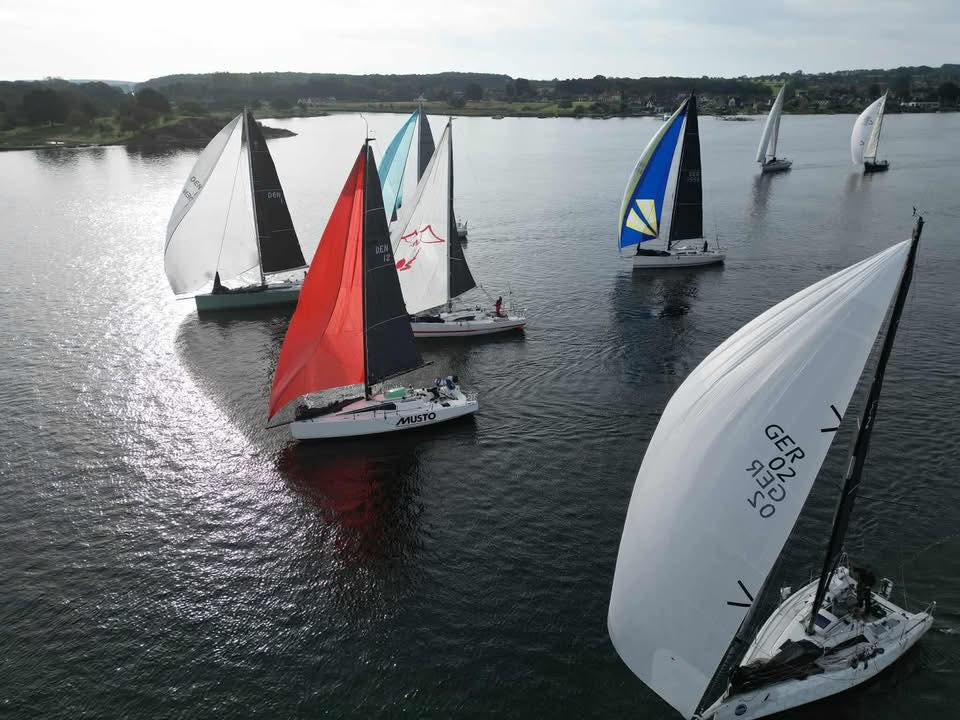 I år stillede jeg igen op med Beluga, min JPK 10.30. Klassen Medium havde 106 både på en kort startlinje. Vinden var frisk nok til at forcere den 1–2 knob stærke modstrøm, og da startskuddet lød kl. 11, var vi afsted med Fyn bagbord.