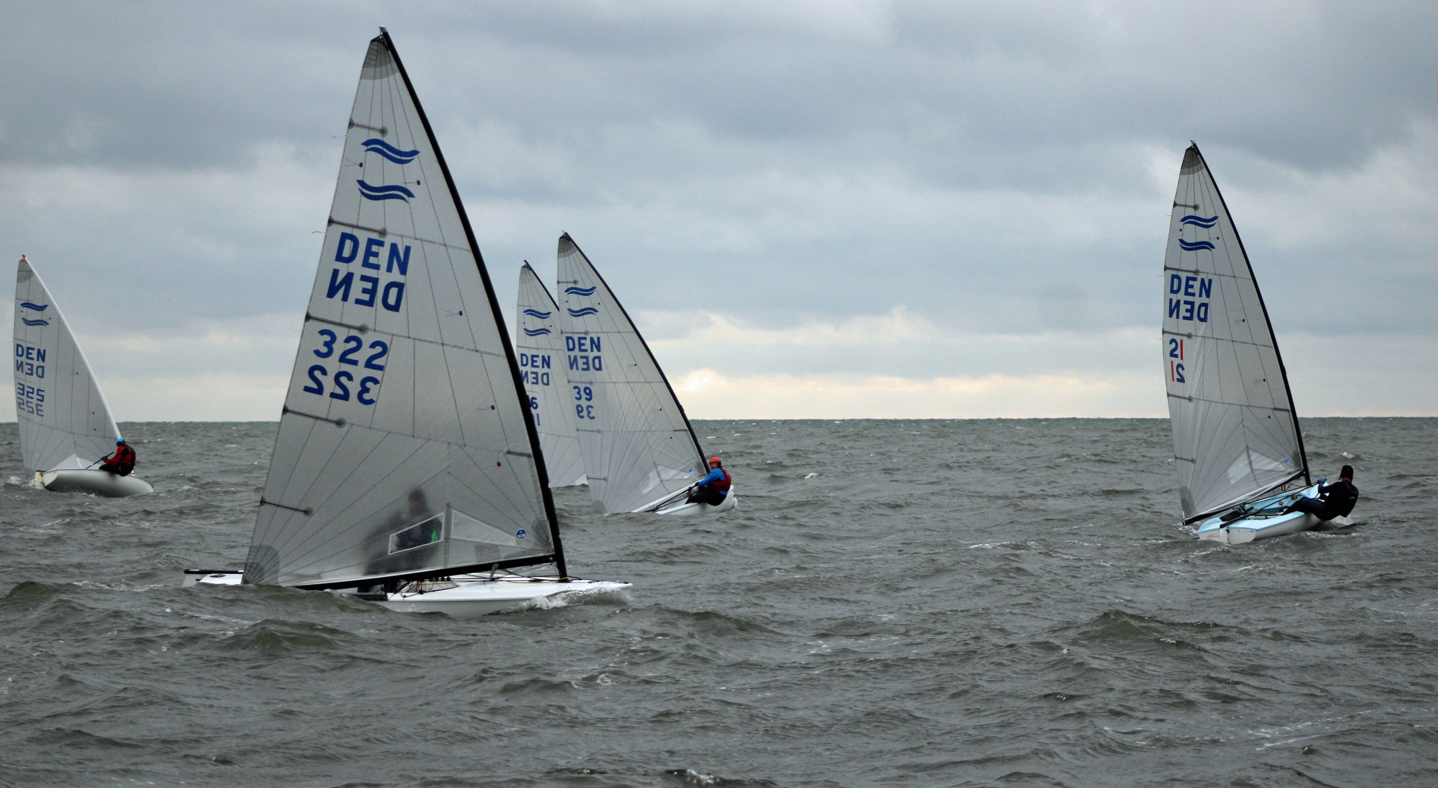På vandet viste Køge Bugt sig fra sin bedste side. 8–10 m/s fra sydøst og store, rullende bølger gav perfekte forhold. De korte sejladser på omkring 25 minutter holdt feltet tæt samlet, og fire sejladser blev gennemført, inden flæskestegen var klar.
