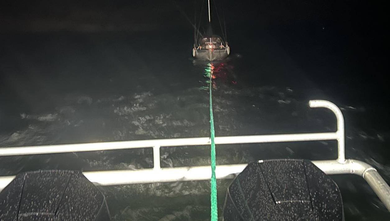 Efter lidt søgen fandt de den nødstedte sejlbåd på 30 fod. Den lå for anker med lanterne tændt, og det viste sig, at et tov havde viklet sig fast i skruen. Dermed var der ingen anden udvej end en bugsering.