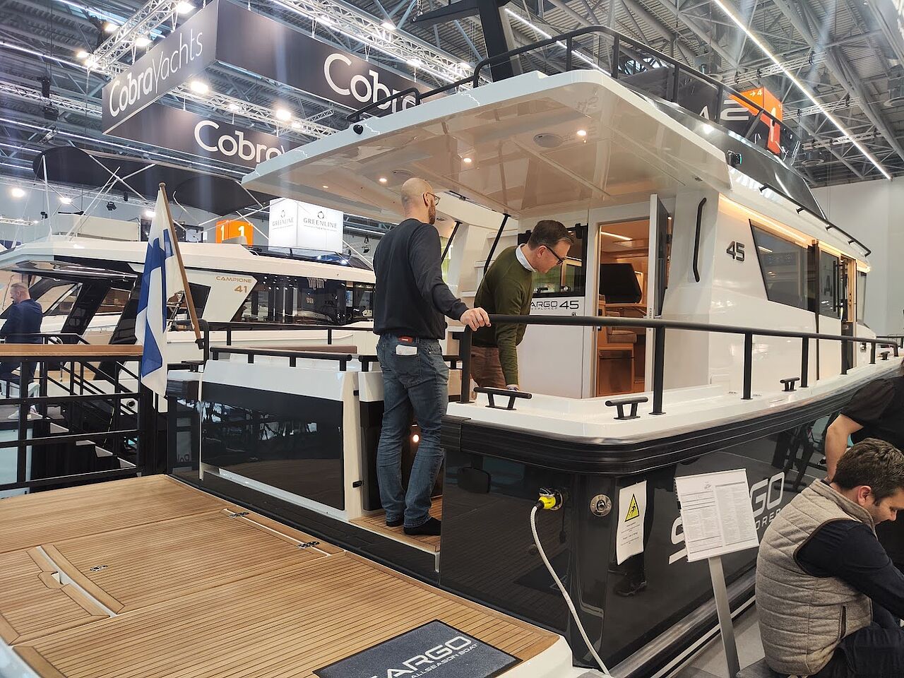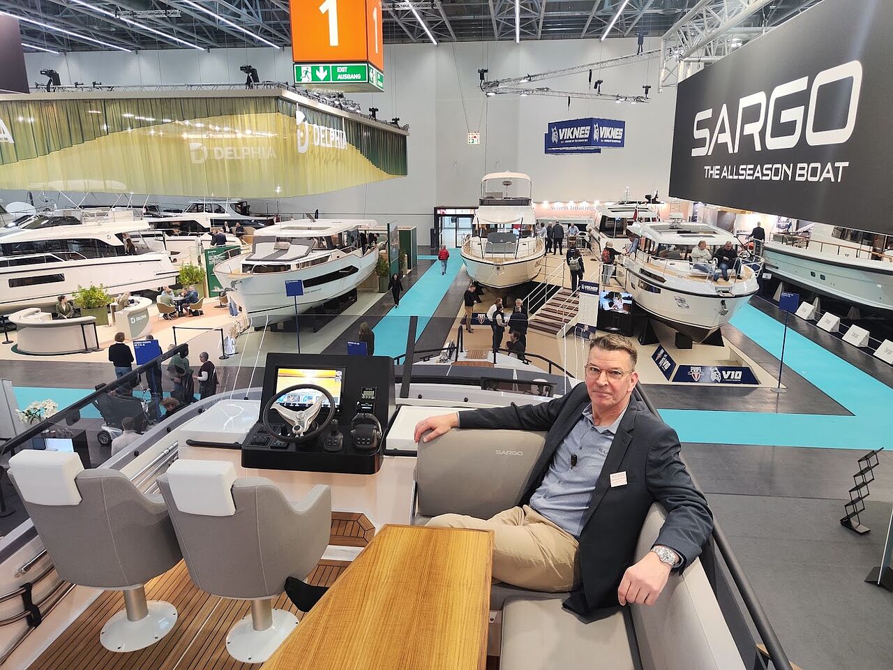 – Det her var ikke en flybridge for flybridgens skyld. Det var en gennemtænkt videreudvikling af en meget stærk platform, hvor Sargo holdt fast i det, de er kendt for: sikkerhed, funktionalitet og helårssejlads, sagde Henrik Juul Petersen fra DBC Marine under messen.
