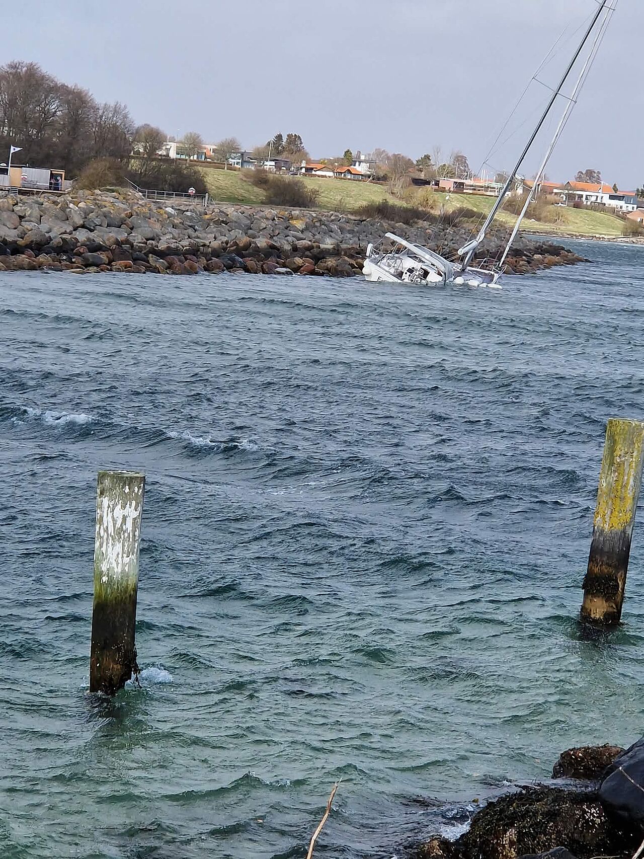 XC 45 fyldt med 1,5 m vand efter slag mod mole ved Egå