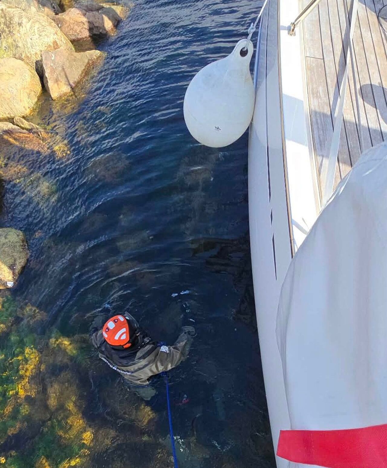 Efter kontakt til forsikringsselskabet blev en dykker tilkaldt. Undersøgelsen viste årsagen: