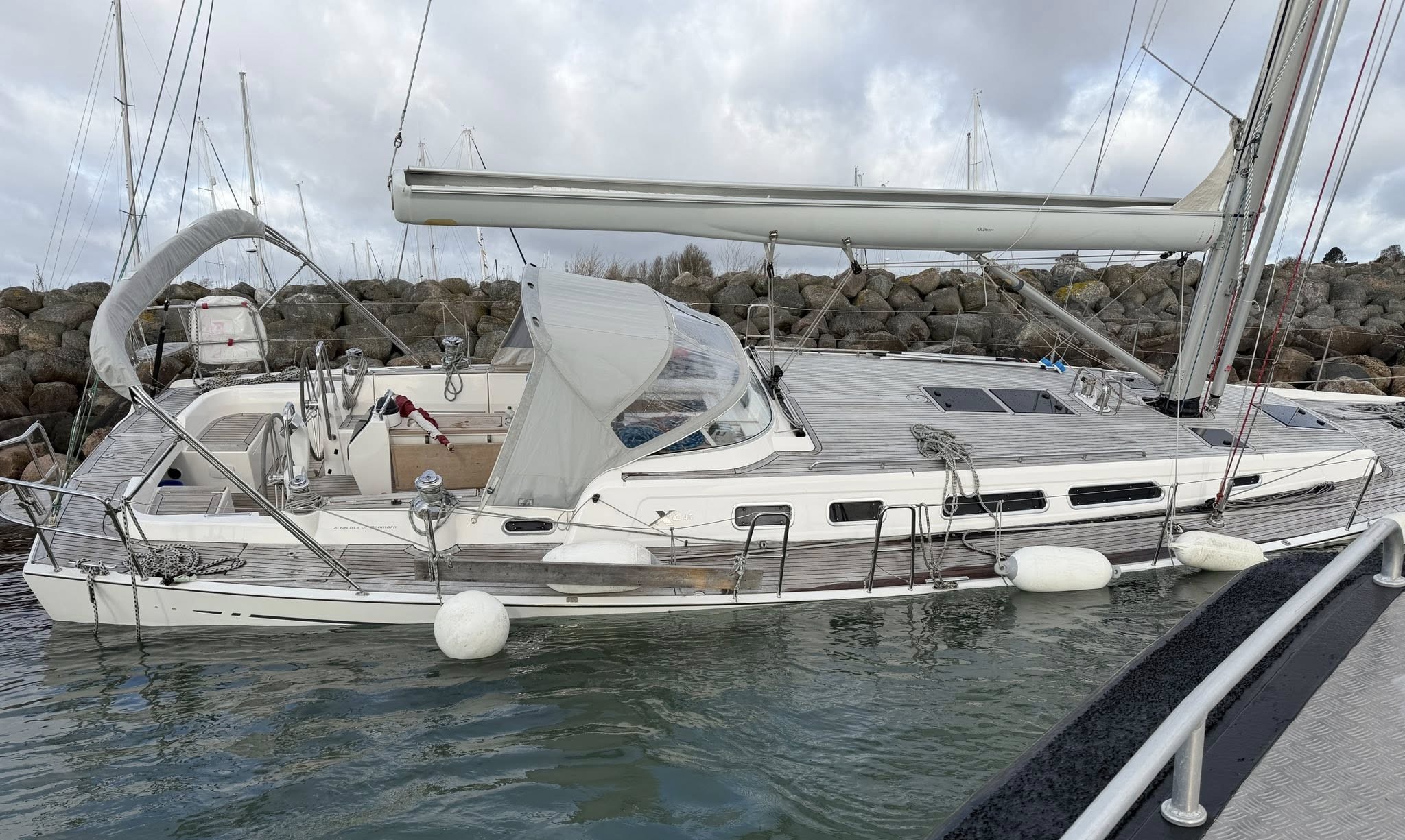 En sejlbåd af typen X-Yachts XC 45 endte sent fredag aften på grund ved indsejlingen til Egå Marina og blev slået hårdt mod stenene på mellemmolen. Båden tog hurtigt store mængder vand ind, og der stod senere op mod halvanden meter vand i kahytten.