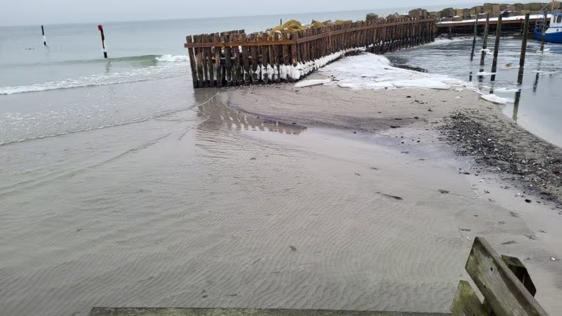 Ved Bøgeskov Havn på Stevns er situationen akut. Indsejlingen er blokeret, og havnen er lukket.