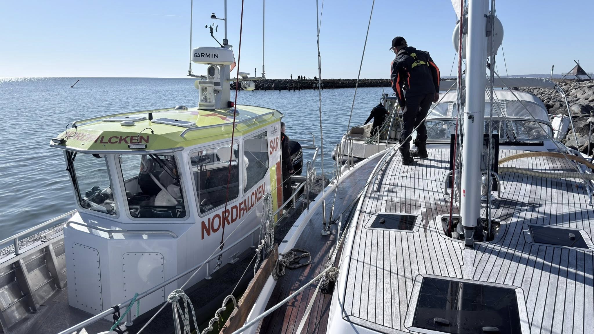 NordFalcken fik ægteparret sikkert i land, mens båden blev efterladt i det hårde vejr.