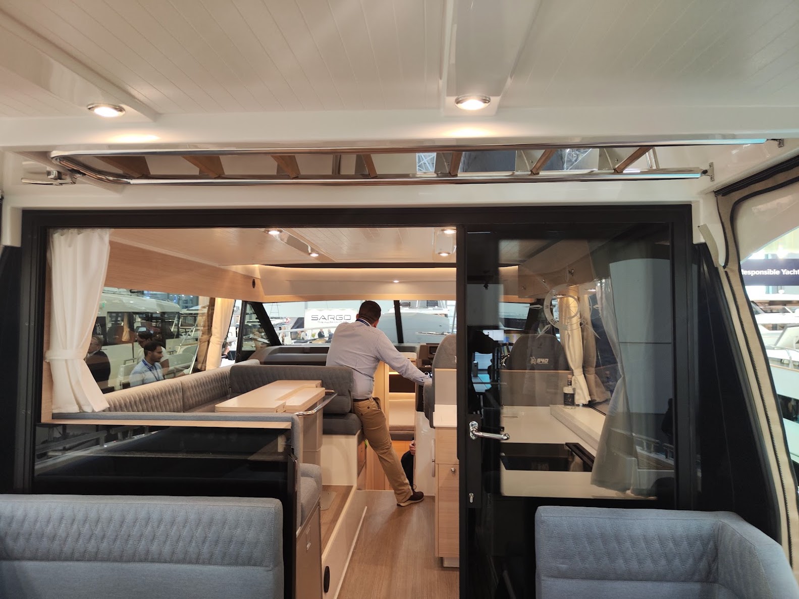 – Det er netop den fleksibilitet, mange familier efterspørger. Man kan lukke af i dårligt vejr og åbne helt op, når solen er fremme, forklarer Mads Skyttegaard, der på boot Düsseldorf 2026 gav en rundvisning til motorbaadsnyt.dk