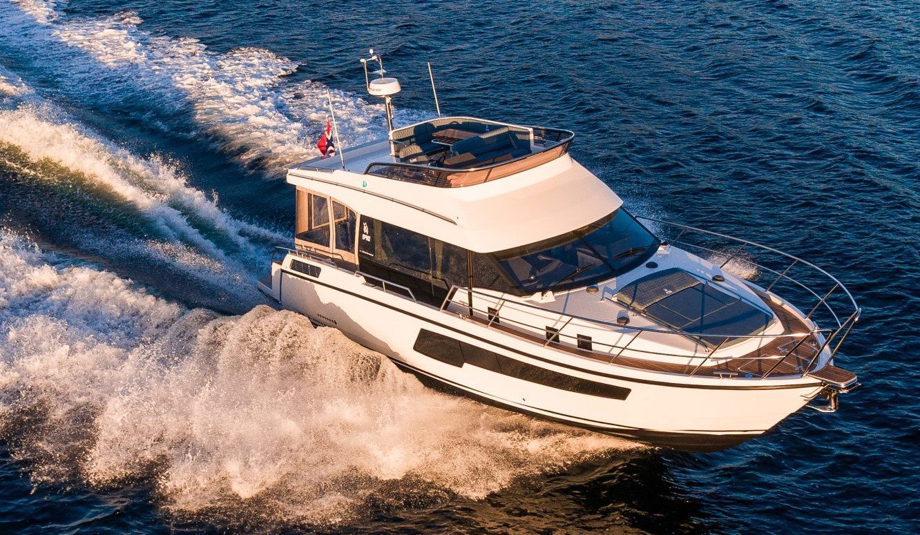 – Det er i praksis en ny båd. Indretningen er ændret, badeplatformen er blevet markant større, og flybridgen er løftet både funktionelt og komfortmæssigt. Samtidig har båden fået et mere moderne og åbent udtryk, siger Mads Skyttegaard fra Kronborg Marine Boats i Helsingør.