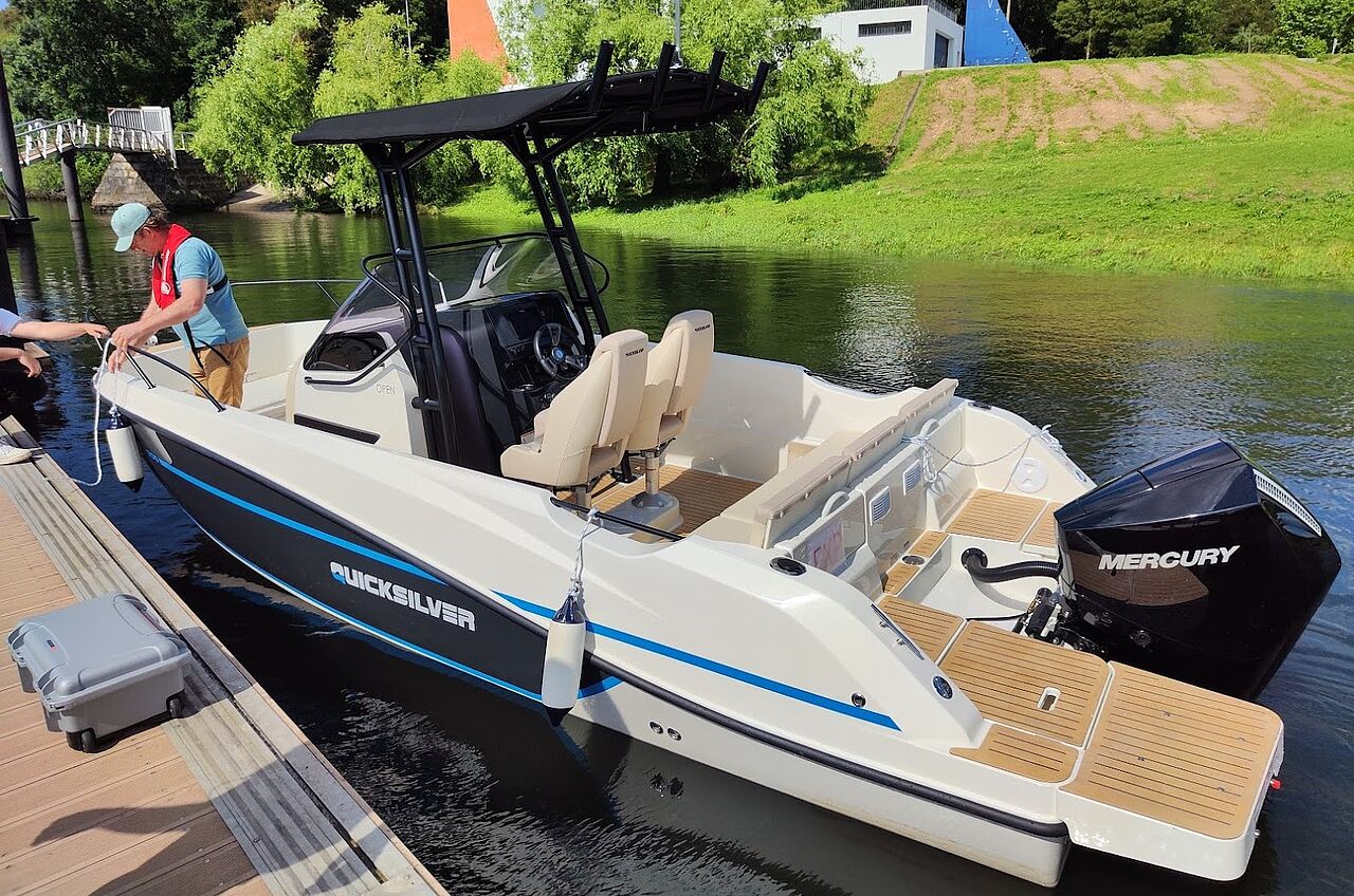 På vandet er skroget det afgørende. Her har Quicksilver valgt en udtalt V-profil i forskibet kombineret med markante linjer. Resultatet er en båd, der går rent gennem bølger og ikke har tendens til at danse sidelæns i urolig strøm.