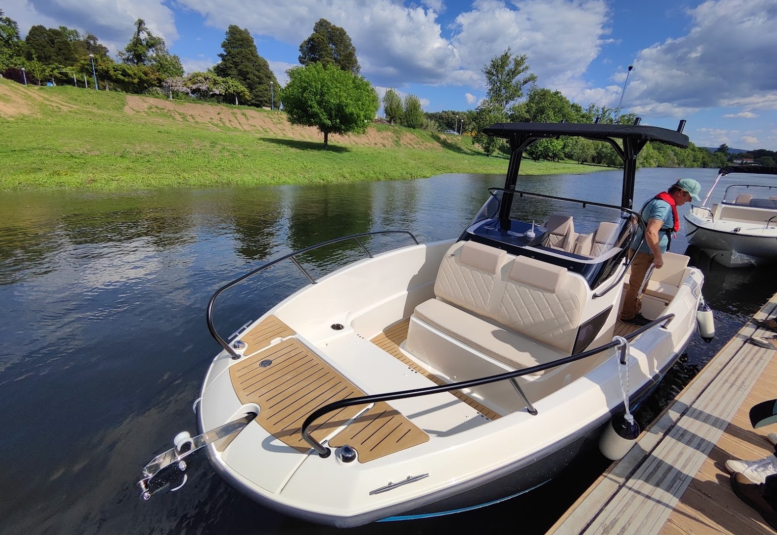 Den syv meter lange centerkonsol med stabilt skrog, fleksibelt cockpitkombinerer familiekomfort, fiskemuligheder og over 40 knobs topfart. Vi testede båden på Tajo-floden mellem Spanien og Portugal.
