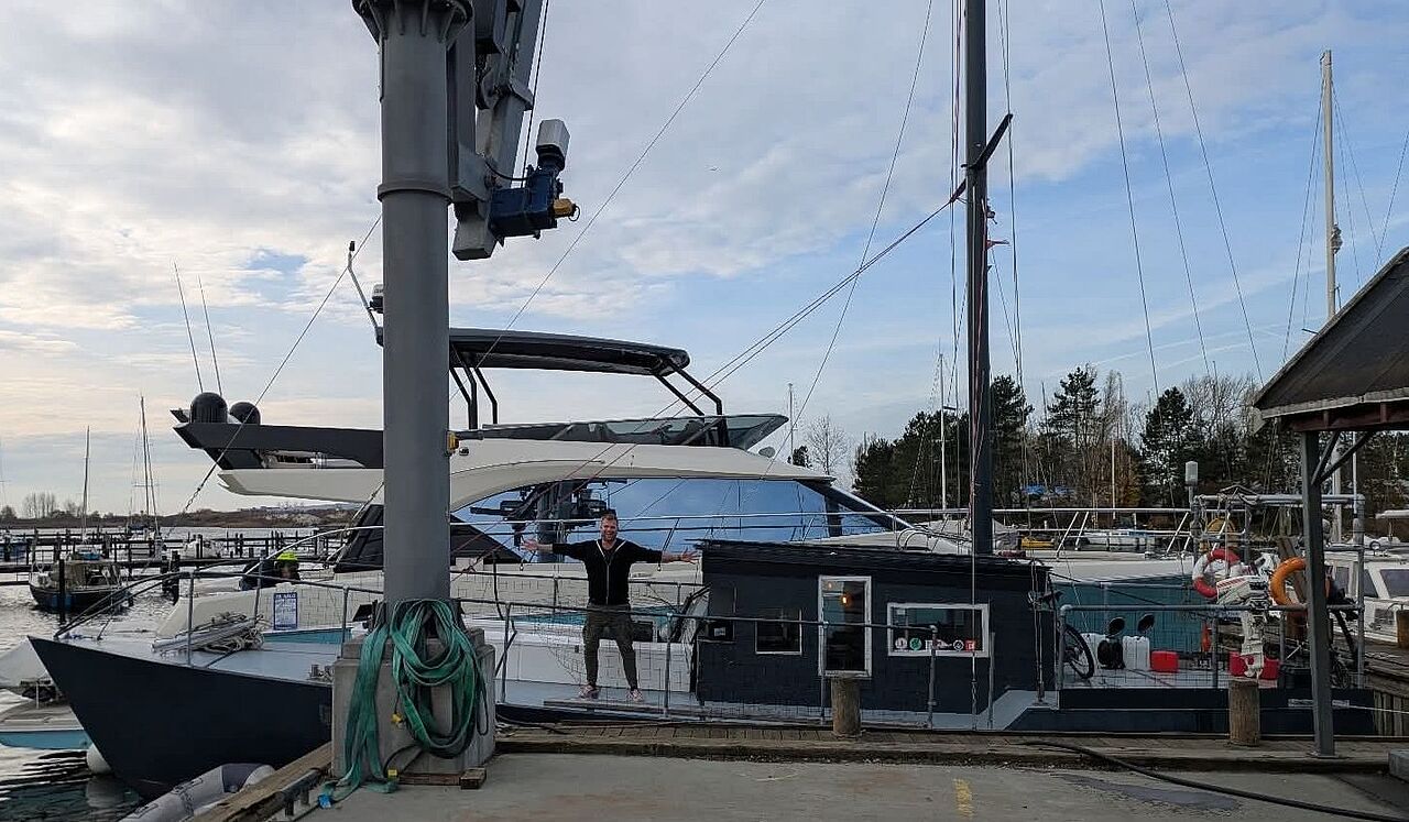 Hvor kan de ligge, hvilke havne kan løfte dem. Katamaranen koster to pladser på grund af bredden, cementbåden vejer 23.33 tons. Det er altså lidt mere komplekst end en simpel motorsejler på 25 fod.