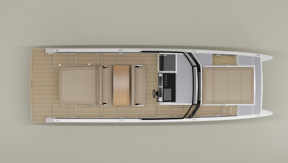 Lasai 32 KS fremstår samtidig som en af de mere vellykkede elbåde rent designmæssigt. Linjerne er rene, og proportionerne udnytter katamaranens bredde til både komfort og funktionalitet.