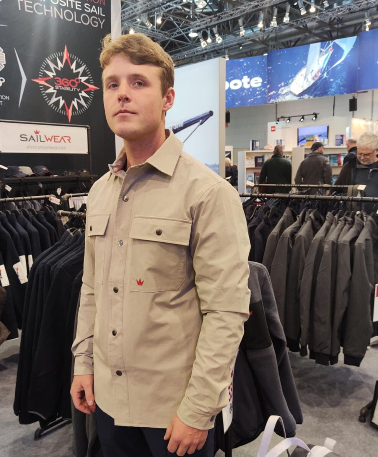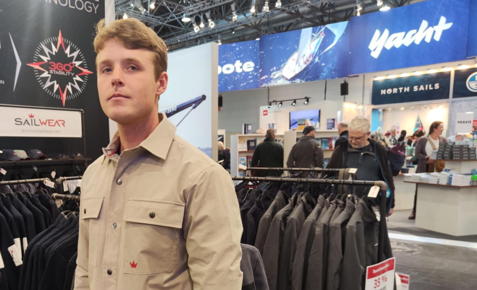På standen ser vi en ny sejlersko, Rimini54, samt skjorten Medemblik 84 Overshirt – Windstopper Performance. Begge produkter har fokus på robusthed, bevægelsesfrihed og materialer med en historie. - Det er vores første sejlersko fra Elvstrøm SailWear, fortæller Andres Ørbæk Olesen.