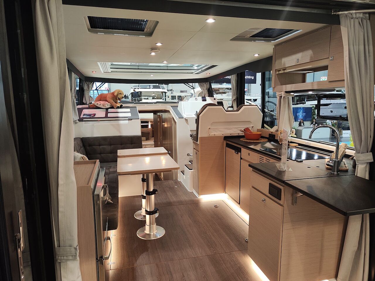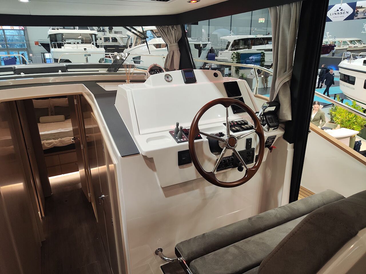 Store vinduespartier giver 360 graders udsyn fra styrepladsen og masser af dagslys i salonen. Cockpittet er fuldt overdækket af et forlænget tag, som beskytter mod vejr og vind, mens brede sidedæk og fire adgangspunkter til cockpit øger sikkerheden ombord. Med en fribordshøjde på blot 2,65 meter kan båden desuden passere under de fleste broer på kanaler og indre farvande.