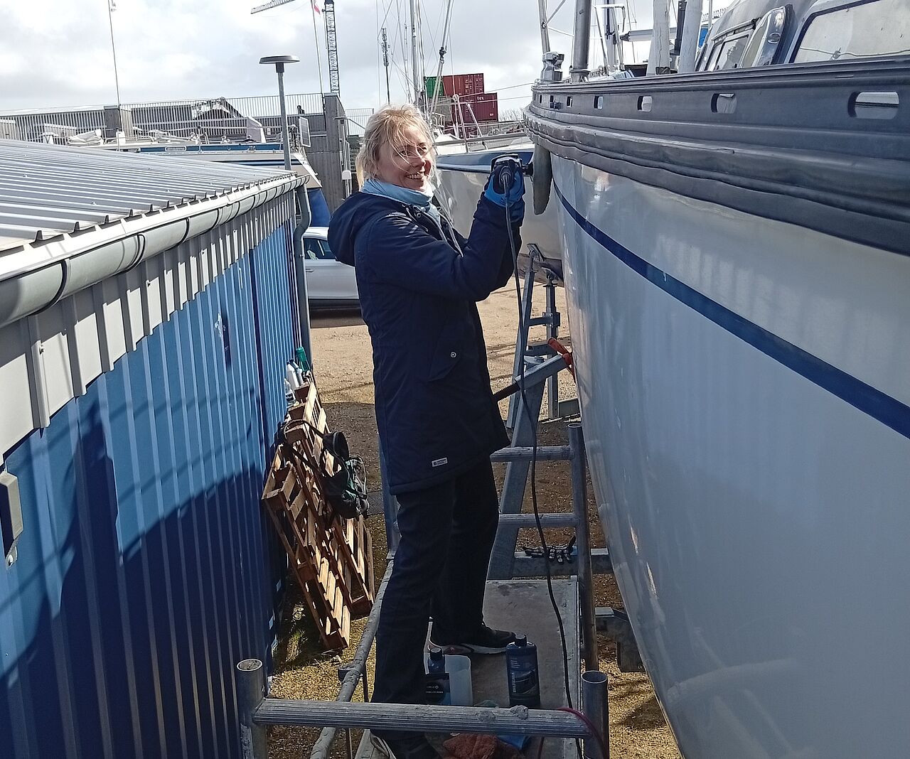Michael havde knoklet. Ikke bare lidt, men sådan rigtigt. Styrbord side var allerede bundmalet og poleret, og nu var det bagbords tur. Jeg tror ikke, han kunne få sig selv til at aflevere en båd til sine nye medejere, som ikke stod i tip top stand.