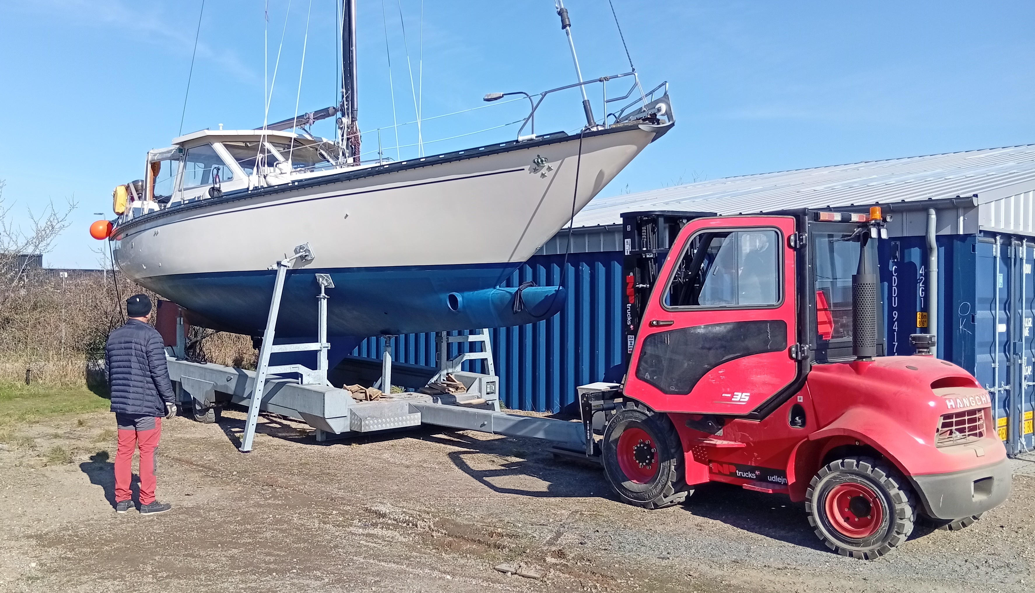 Vi ankom lørdag morgen kl. 09.00. Stigen stod allerede op ad båden. Michael var kommet.