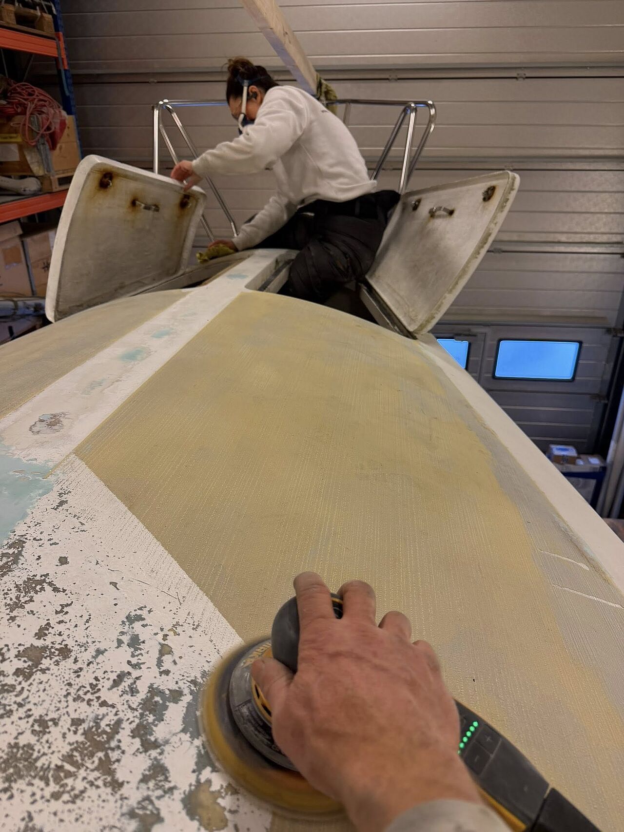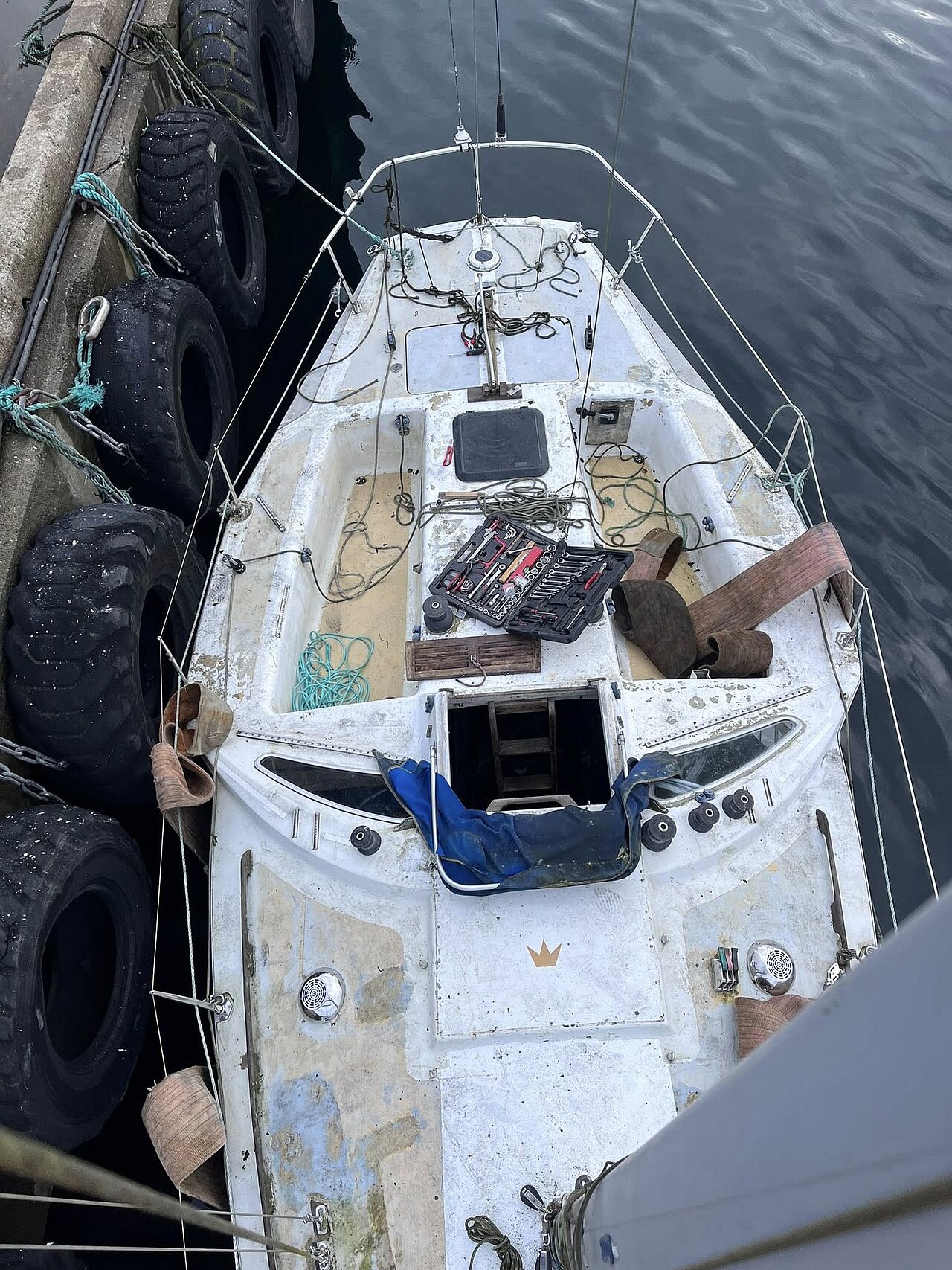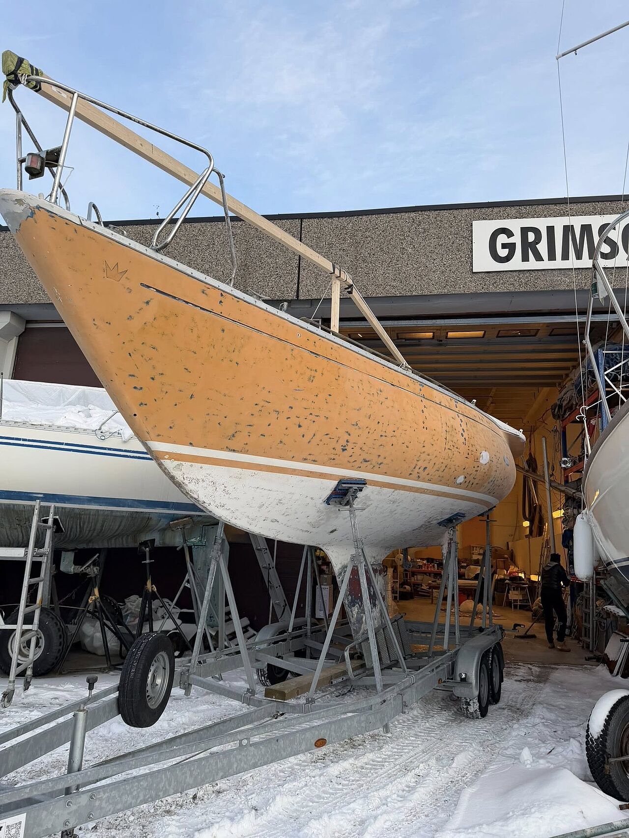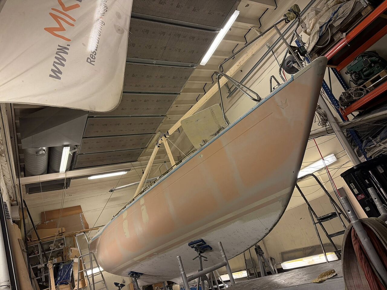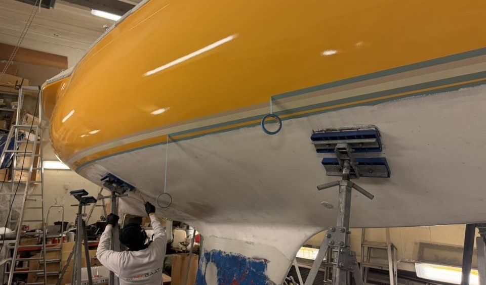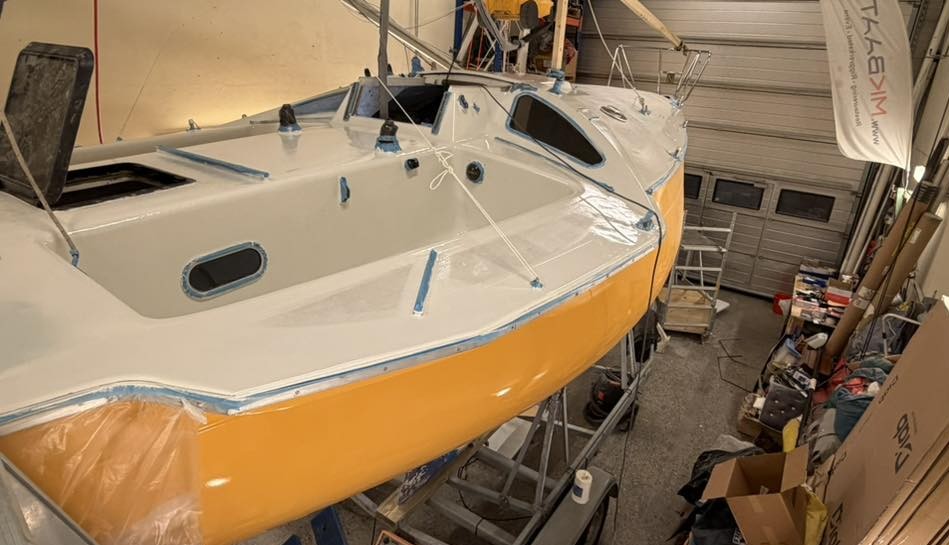 Arbejdet hos MK Baat A/S (se fotos og video) har omfattet omfattende strukturel gennemgang, finish og lakering. Resultatet er en båd, der fremstår som ved leveringen i 1972 – men teknisk klargjort til kapsejlads i dag.