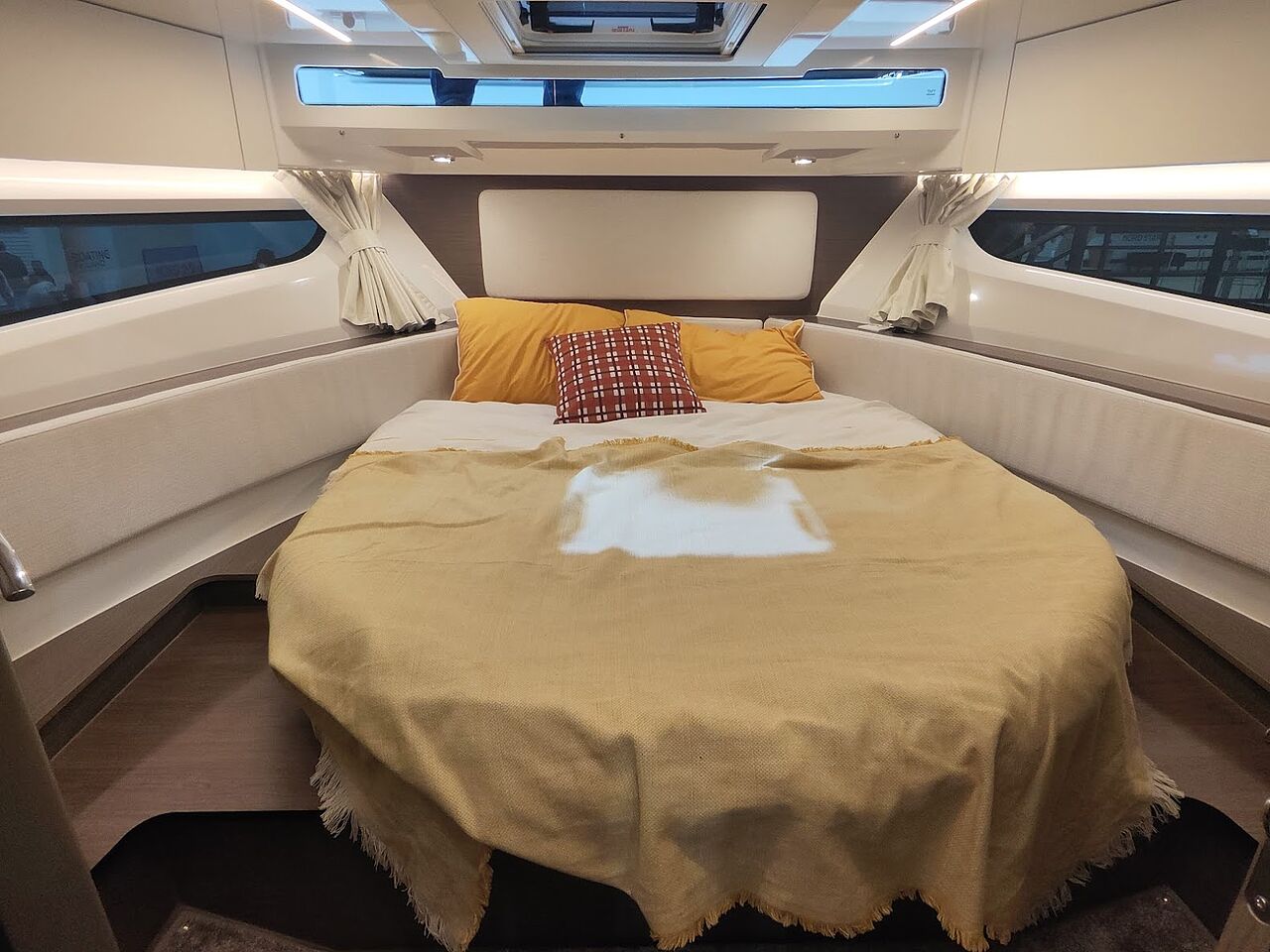 Coupé-versionen adskiller sig fra flybridge-udgaven ved at prioritere ét samlet opholdsrum. Cockpittet er indrettet med en U-formet siddegruppe, som giver mere gulvplads og bedre flow om bord.