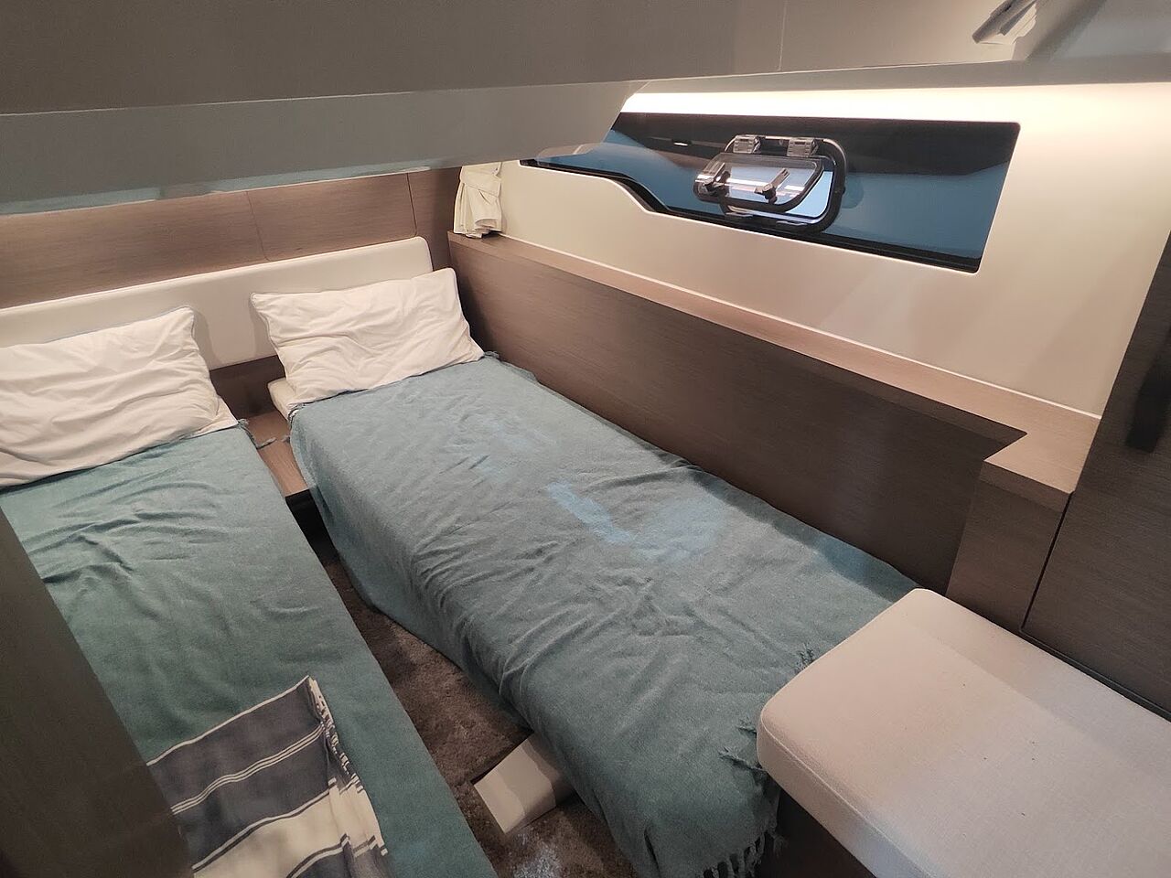 Agter er der en kahyt med to separate køjer, som især henvender sig til børn eller gæster. Løsningen er enkel, men funktionel – og helt i tråd med bådens weekend- og familiefokus.