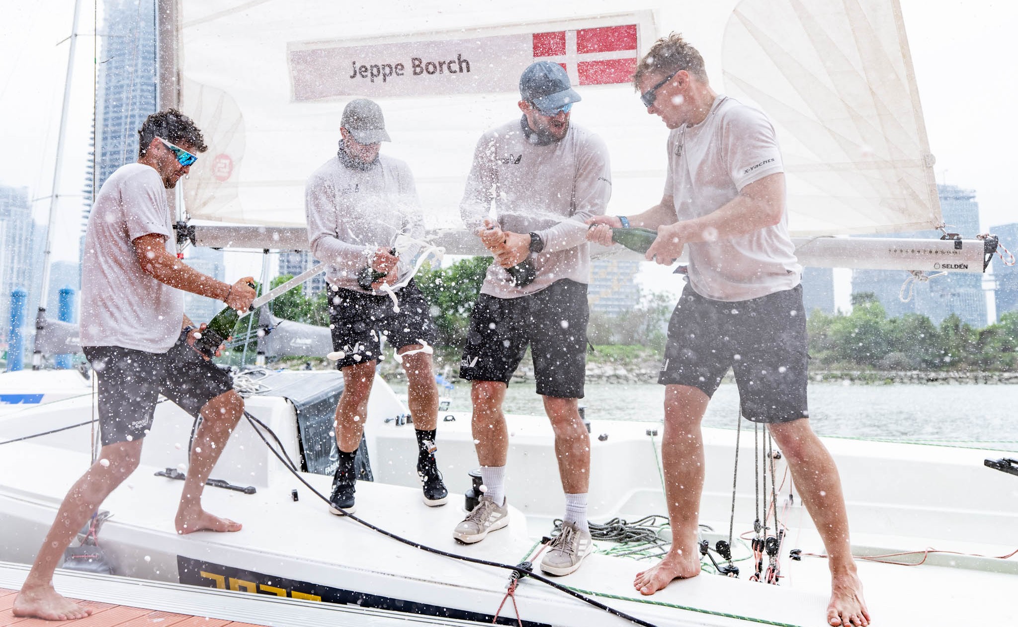 – Fantastisk at få sejren i hus i Macao (Kina). Der blev sejlet i den livlige bådtype, FarEast 28R, forklarer den Jeppe Borch til minbaad.dk.
