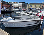 På Boat Show i Fredericia 2023 ses en østrigsk daycruiser, som har masser af teaktræ og lækre sæder. Det er sejlads på den meget behagelige måde, især hvis solen skinner, men man skal også slippe lidt over to mio. kroner for båden